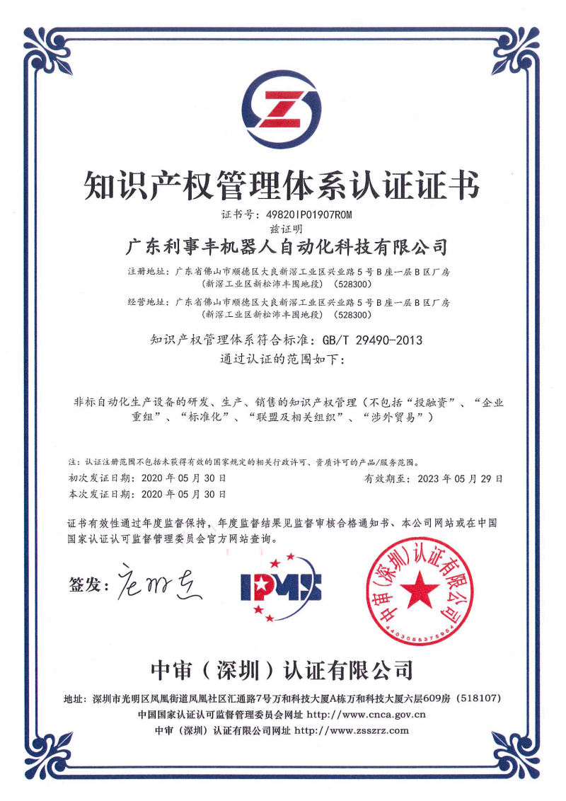 知識產(chǎn)權(quán)管理體系認(rèn)證證書